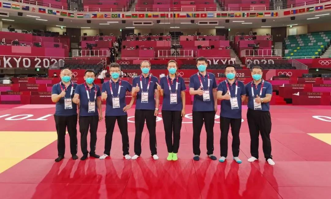 在东京奥运会摔跤项目赛场合影